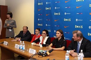 Press conference at Kazan and Khorkina was there, too