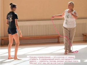 我比其他競爭奧運跟歐錦賽參賽席位的女孩們的年紀都小,我很焦慮。我試著讓自己保持平靜。Vera Efremovna 幫我很多,她完全沒有顯露她的緊張,但我知道她很擔心我。然而她總在我上場前告訴我 ”為什麼我要害怕,保持平常心就好。” 這番話後來對我幫助很大。