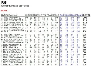 計算 World Cup Series 最佳的 4個成績,Zhenya在 Rope 跟 Ball 拿到總分滿分 200分,這兩個單項她在所有參加的比賽都拿到第一名。