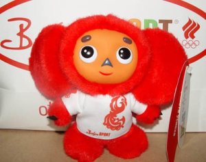 我最近迷戀上Cheburashka,這是RUS OG Team的吉祥物,但其實他是早期蘇聯的一個很有名的卡通片裡頭的角色,之後被選為RUS OG Team的吉祥物,今年的冬季奧運也是他,冬奧布偶有3種顏色-紅、藍、白,就是RUS國旗的顏色。