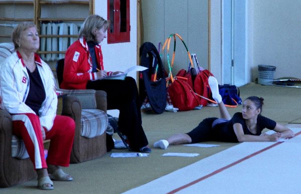 Kanaeva: 不會, 7-10歲時, 精力充沛, 不會在意那些困難的事情. 像是跑, 拉, 跟訓練. 伸展韌帶的確是很痛苦的過程. 女孩們會哭, 但做伸展是必要的. 然而, 終究不是每個人都能做伸展. 因此跟那些在體操上更有能力的人一起工作是必須的. 但是, 身體硬的女孩做急轉做的比較好, 然而不是所有柔軟的人都能成為體操選手 – 她們就像香腸 (catts’ 譯註: 意旨需要花時間去挑選). 這些是我們這項運動的秘密.