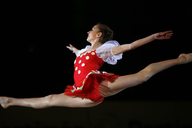 Evgenia Kanaeva of Russia performs with ribbon during gala exhibition at 2008 Portimao World Cup of Rhythmic Gymnastics on April 20, 2008. Photo by Tom Theobald