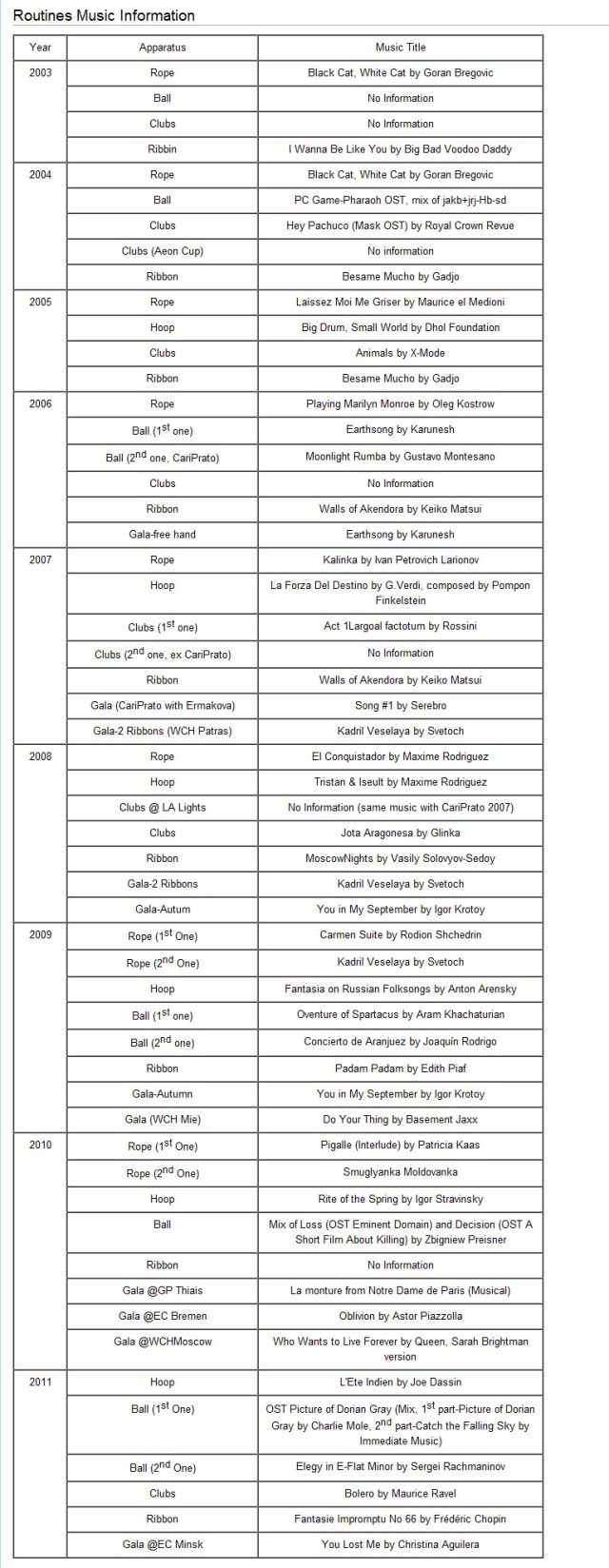 Today, I added Zhenya’s routines music information (including gala) @her wiki page, in English, Chinese and Russian version. some routines no information, correct me or if anyone know those routines without music information please tell me, Thank you! And welcome everyone to add this information to her other languages’ wiki page!