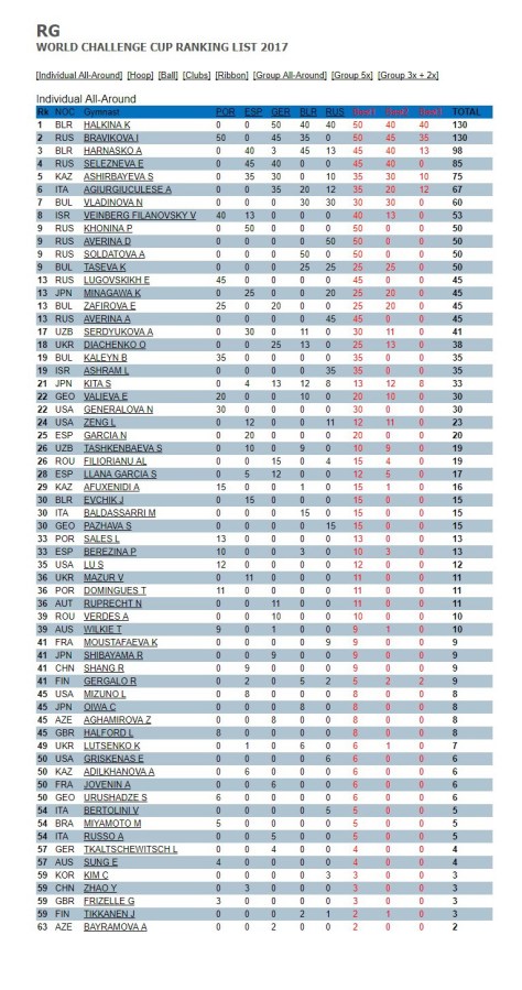 ← RG WORLD CHALLENGE CUP RANKING LIST 2017