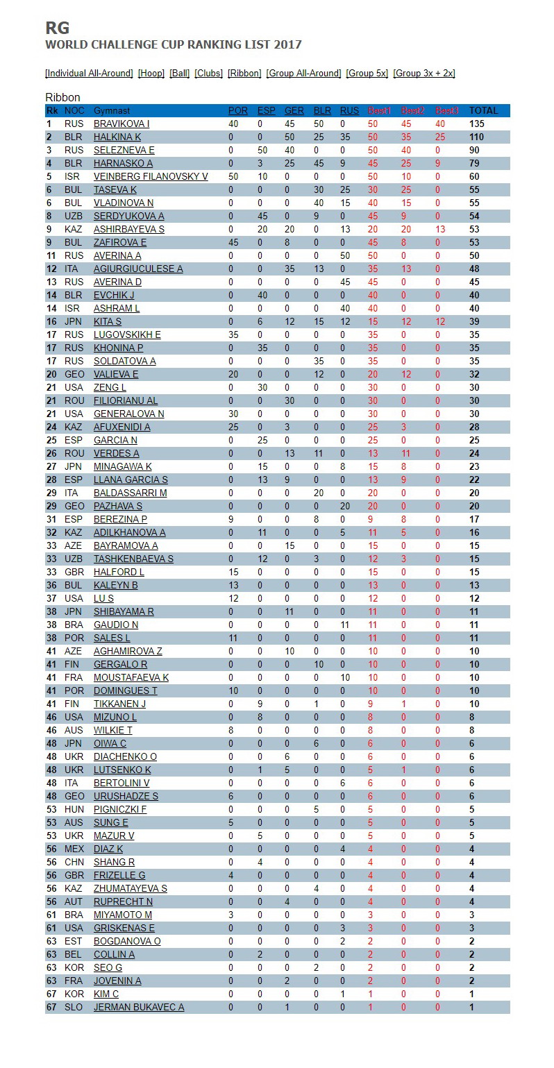 ← RG WORLD CHALLENGE CUP RANKING LIST 2017