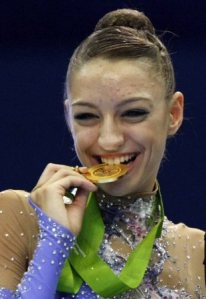 Q: 在Mie, 當你掛著6面金牌站在頒獎台上, 你是什麼感覺? 自從17年前Oksana Kostina在一個世錦賽中贏得5面金牌後, 沒人曾經再獲得如此驚人的成績. (note by zhenya0402, 其實5面金牌的人也有好幾個, 2005年Kapranova也拿了5金. Petrova也拿過5金)